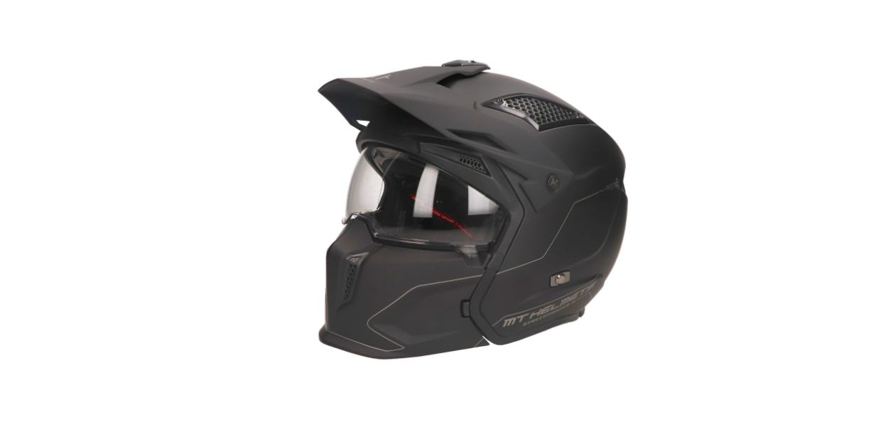 De Streetfighter helm is een stoere mat zwarte helm van het merk MT Helmets. Deze helm heeft een sportieve uitstraling en kan worden gedragen met of zonder mondstuk masker. Door een eenvoudig systeem is dit masker gemakkelijk te (de) monteren. Met deze helm wordt een mount bevestiging voor de GoPro meegeleverd welke eenvoudig boven op de helm is te monteren. De MT Streetfighter helm is uitgevoerd met een eenvoudig met de hand te bedienen zonnevizier die geïntegreerd is in de helm.