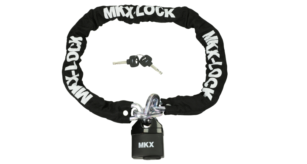Universeel toepasbaar MKX kettingslot. Door de lengte van 120cm is deze makkelijk mee te nemen in bijvoorbeeld een buddybak van een scooter. Dit slot is voorzien van 10mm gehard staal. De MKX kettingsloten zijn voorzien van een stevige nylon hoes tegen beschadiging van de velg en zijn eenvoudig in gebruik.
