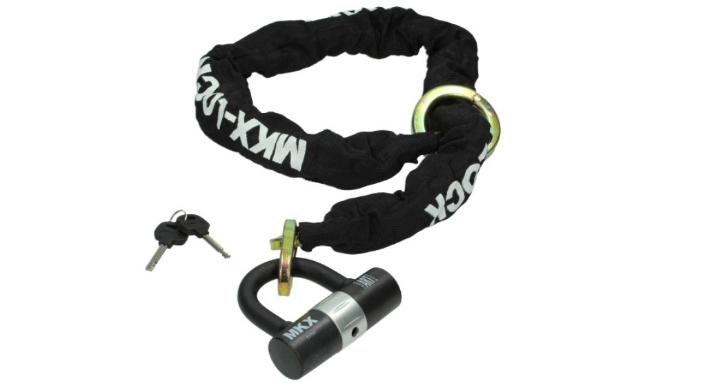 Universeel toepasbaar MKX kettingslot. De MKX kettingsloten zijn voorzien van dikke 10,5mm geharde stalen schakels en zijn ART4 gekeurd (4 sterren). Deze sloten worden veel gebruikt voor Fietsen, Scooter en Motorfietsen. Door de lengte van 120cm is deze makkelijk mee te nemen in bijvoorbeeld een buddybak van een scooter, tevens is dit kettingslot uitgevoerd met een handige bevestiging ring.
